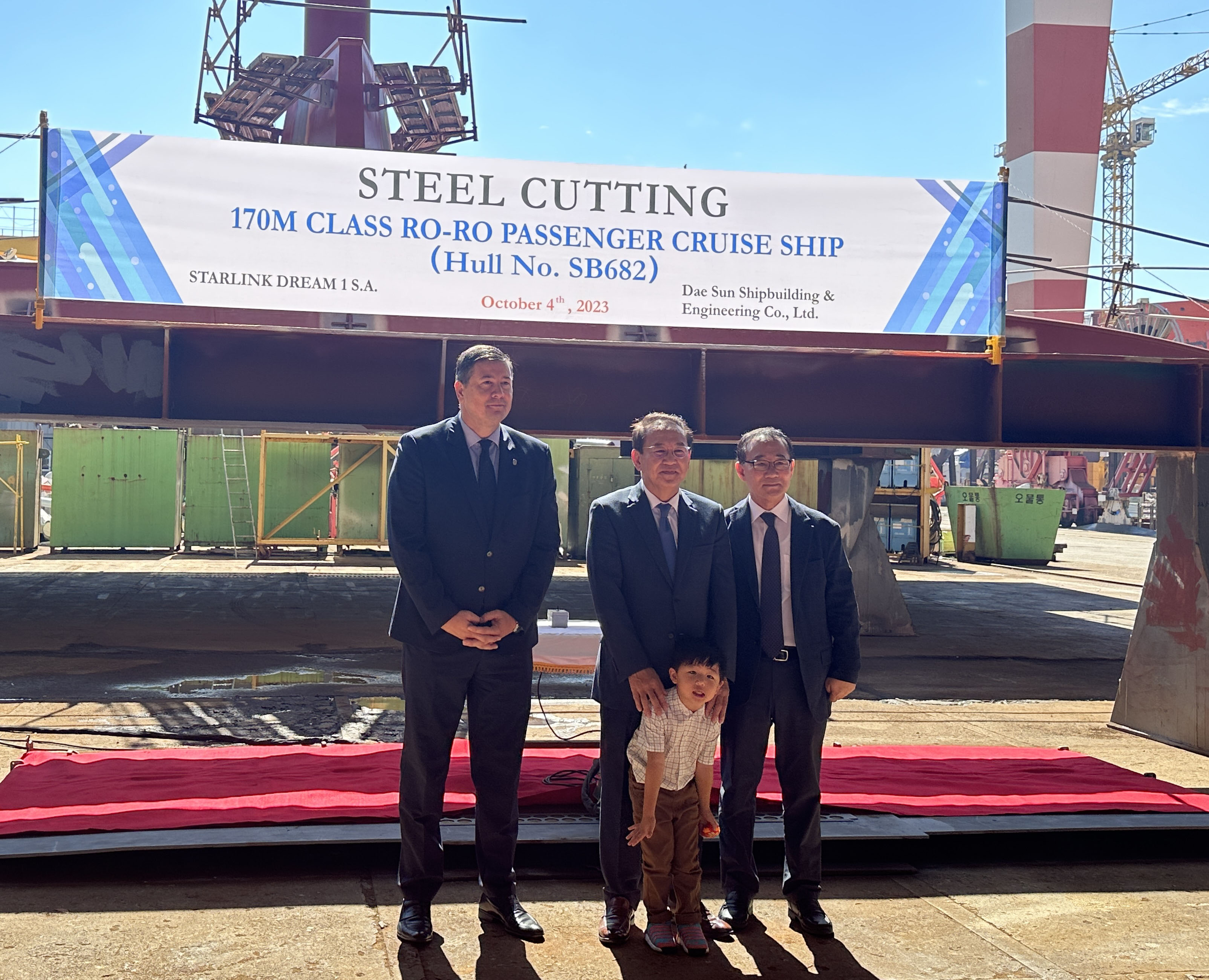 팬스타그룹, 국내 첫 호화 크루즈페리 본격 건조 시작 대선조선에서 착공식 개최...2025년 2월 말 인도 예정 팬스타그룹은 4일 부산시 사하구 대선조선의 다대포야드에서 착공식(강재절단식)을 갖고 국내 최초 호화 크루즈페리인 ‘팬스타 미라클호’의 본격 건조에 들어갔다고 밝혔다. 착공식은 김현겸 회장, 김종태 총괄부회장, 류익현 총괄사장