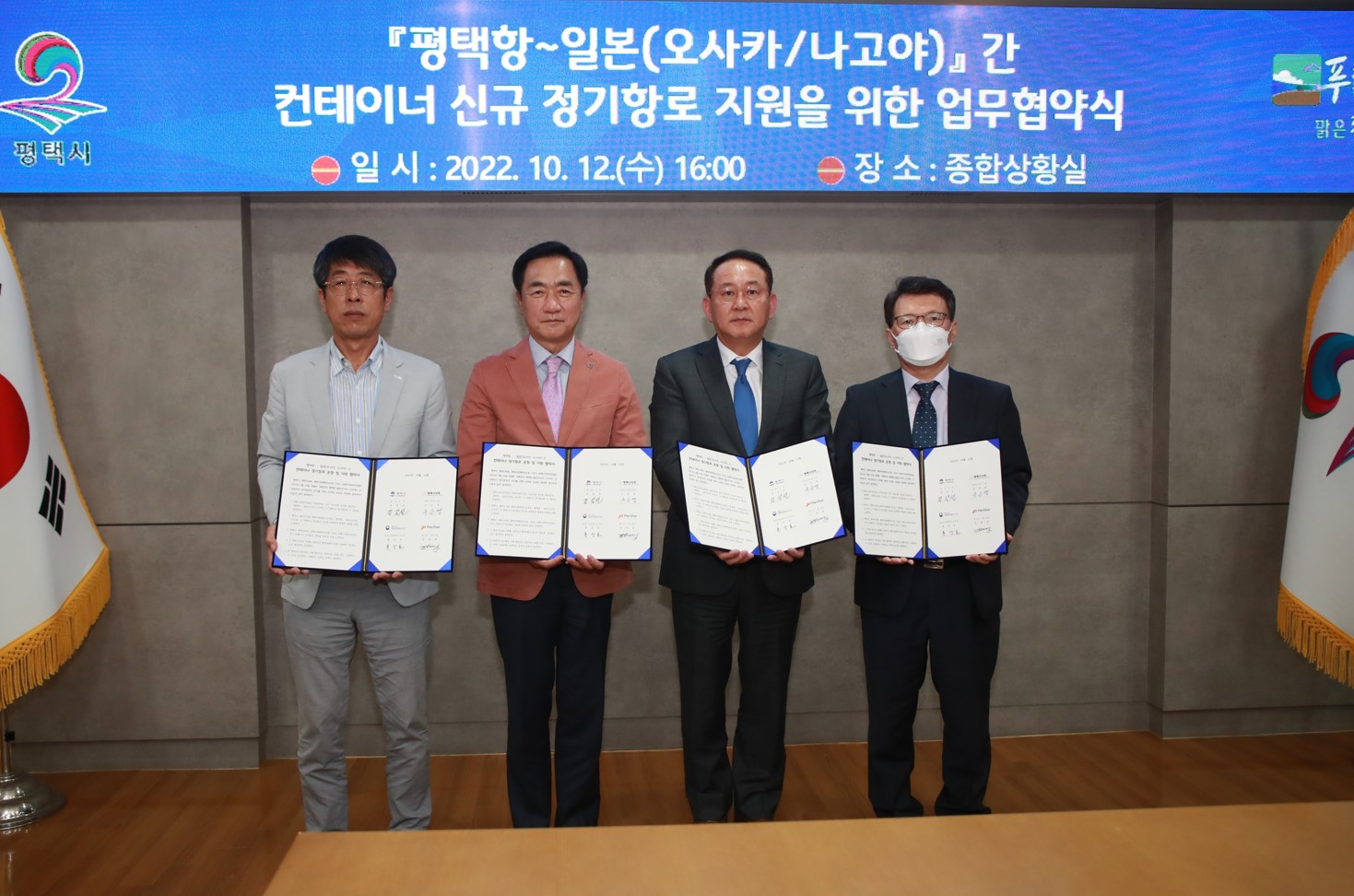 - 팬스타그룹, 평택시 등과 평택항~일본 간 컨테이너 정기항로 운항 및 지원협약 체결 - -팬스타라인닷컴, 평택~오사카/나고야 신규항로 개설, 주 1회 운항 평택시 등은 항로유지와 추가항로 개설에 협력,행정·재정적 지원 팬스타그룹은 12일 오후 경기도 평택시청 대외협력실에서 평택시 등과 ‘평택항~일본 간 컨테이너 신규 정기항로 운항 및